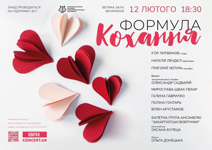 До Дня закоханих артисти та колективи Закарпатська обласна філармонія. запрошують поринути у світ музики, ніжності й гармонії.