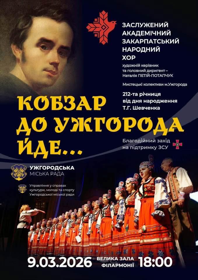 Концерт від Закарпатського народного хору на підтримку Збройних сил України відбудеться 9 березня в обласній філармонії.