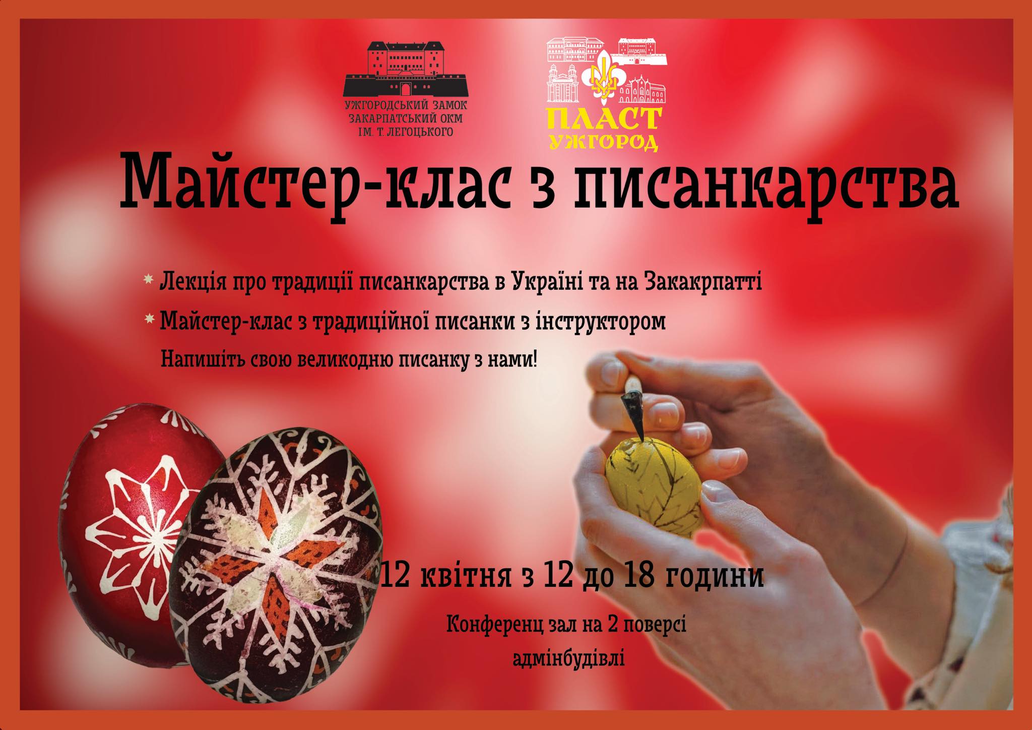 Запрошуємо Вас зареєструватися на захід *”Писанкарство-2025″*, щоб дізнатися більше про орнамент закарпатських писанок та мати нагоду розписати свою власну, яка стане ще більш чудовою з допомогою наших інструкторів)