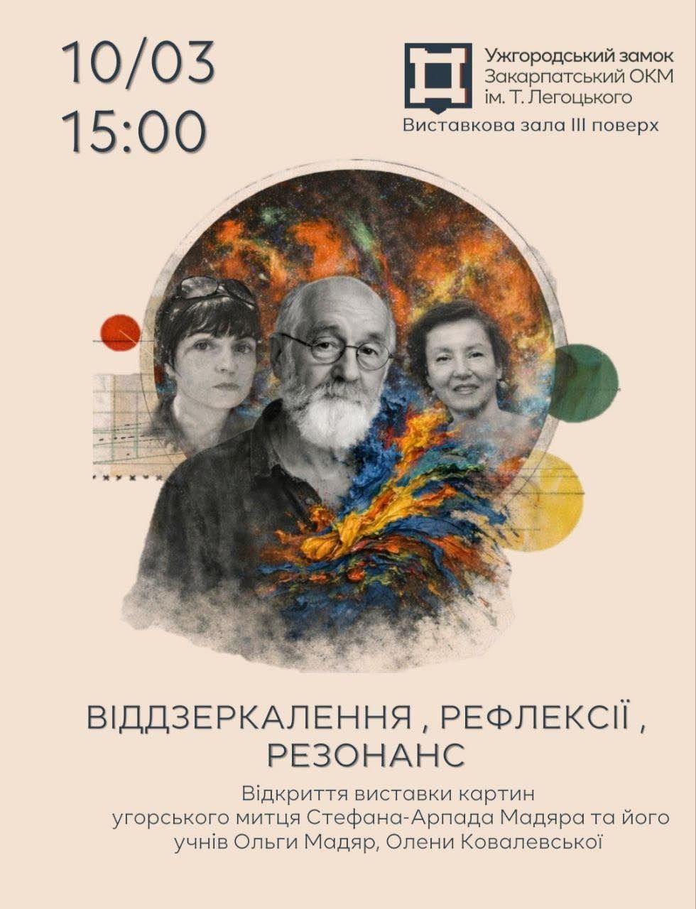 Ужгородський замок, Краєзнавчий музей імені Тиводара Легоцького запрошує на відкриття виставки картин угорського митця Стефана-Арпада Мадяра і його учениць Ольги Мадяр та Олени Ковалевської.