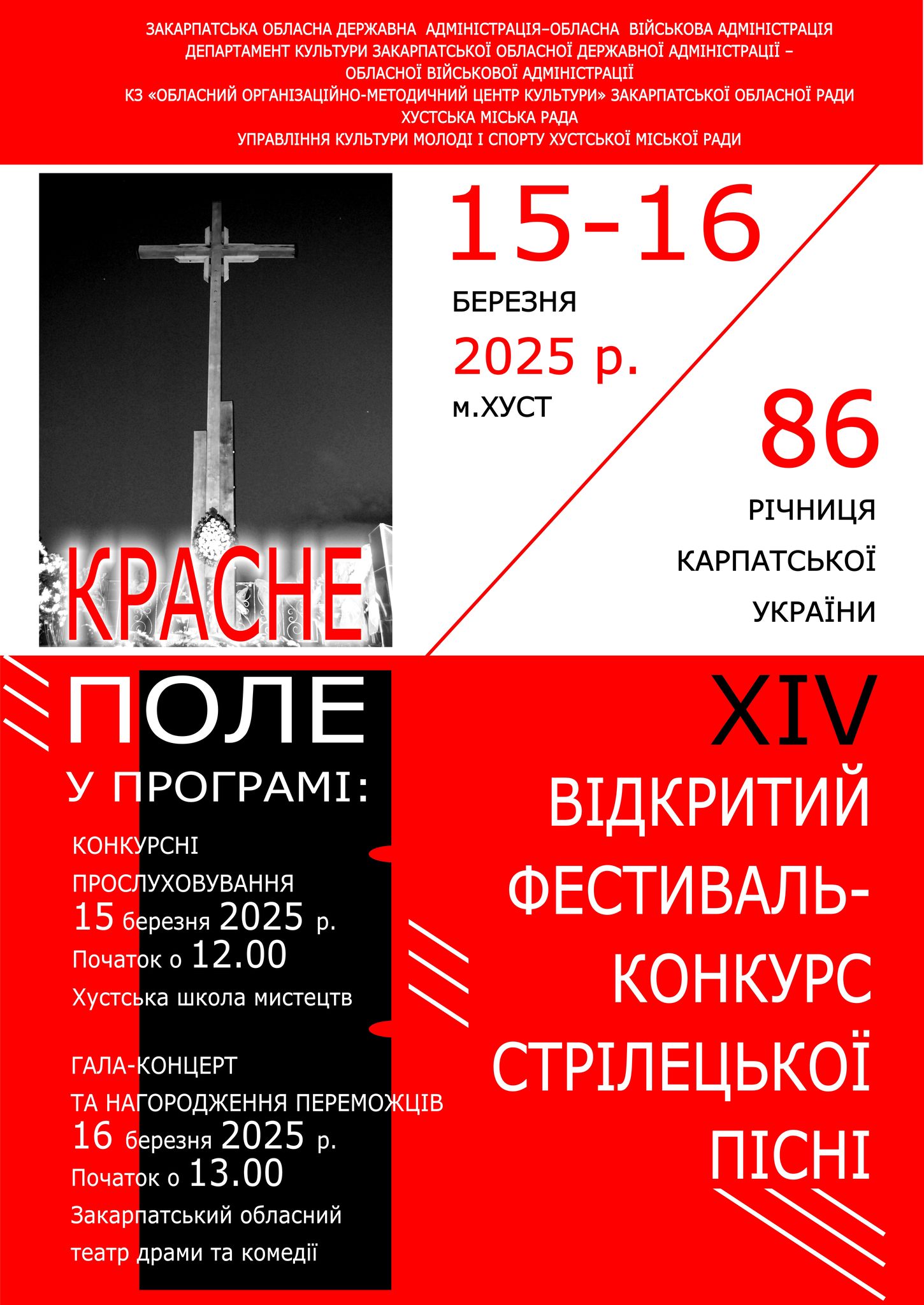 У Хусті відбудеться ІІ тур Відкритого фестивалю-конкурсу стрілецької пісні «Красне поле» та гала-концерт і нагородження переможців