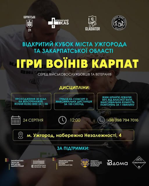 24 вересня в Ужгороді відбудеться Відкритий кубок міста та області «Ігри воїнів Карпат» серед військовослужбовців та ветеранів. Змагання покликані підтримати бойовий дух та спортивну майстерність наших захисників.