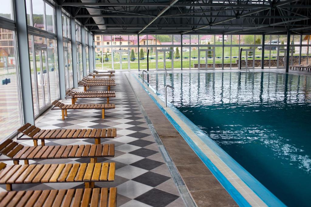 «Verhovyna» — еко-курорт на природі з відкритим басейном просто посеред лісу. На території — лаунж-зона з шезлонгами, бар і дитячий майданчик. У літній сезон працює велика купальна чаша з теплою водою та басейни різних типів. Для гостей, які не проживають у готелі, вартість відвідування становить: