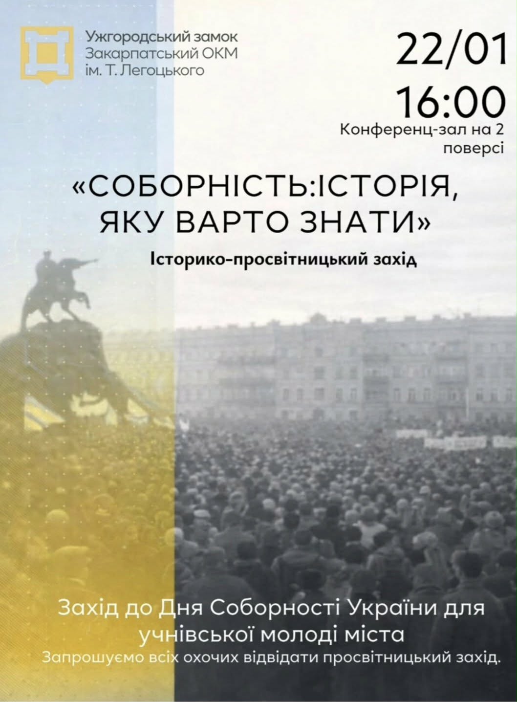Запрошуємо учнівську молодь міста на просвітницький захід до Дня Соборності України, під час якого:
