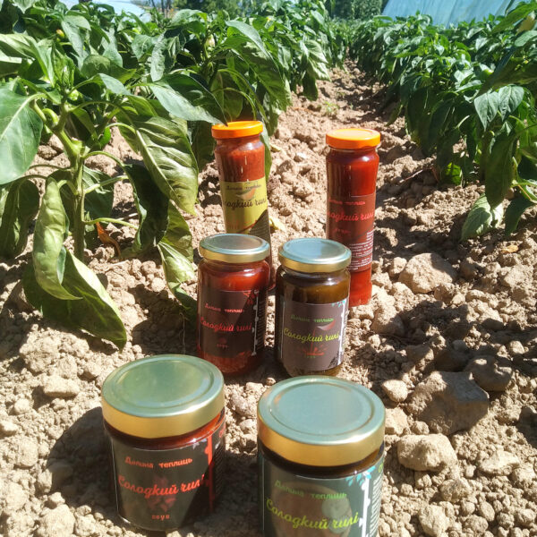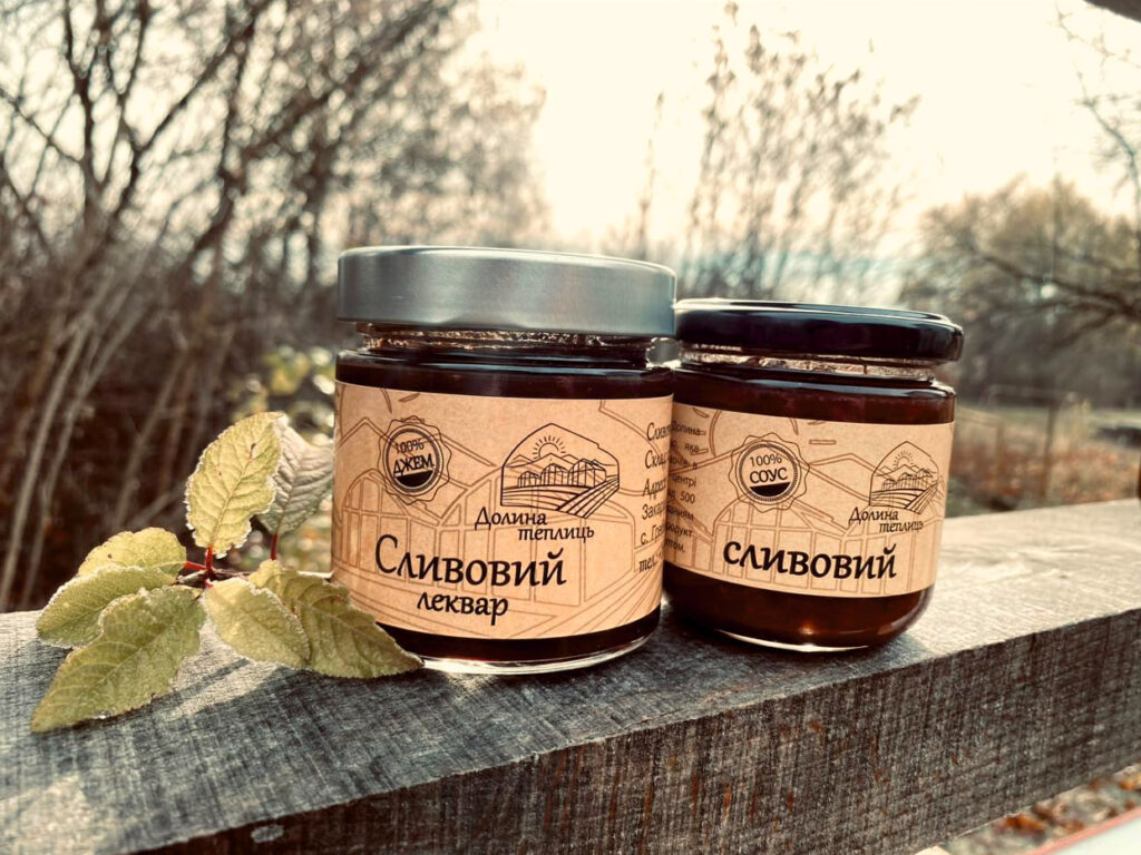 The brand combines products from the greenhouses of the Borzhava Valley. It includes marigold chilli sauce, dilapidated plums and poimdors, a souvenir trio of jam jars, eco-chips made from dried fruit and much more.