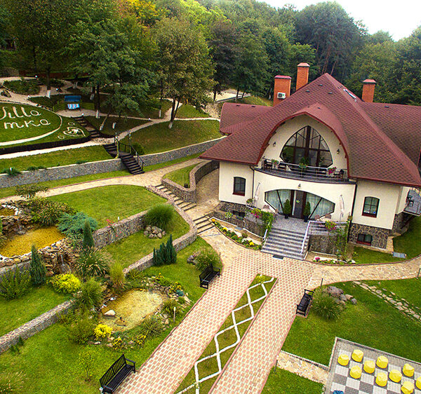 There is a colourful hotel in the village of Shayan in Khust district "Chervona Ruta". There are Hutsul huts, Swiss chalets and other cottage formats, and the whole territory looks like a gingerbread house. The spa area is stylised as Provence, and the panoramic windows from the pool offer a truly beautiful view. In fact, there is a large swimming pool, sauna and spa menu.
