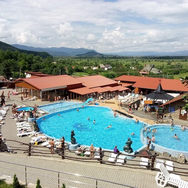 The complex is located in the city of Beregovo "Lark"It is not as attractive as Kosyno, but it is much more affordable. The website states that the water used to replenish the pools comes from wells 1200 metres deep. Therefore, it is not subjected to technical or chemical treatment. The hot water comes from magmatic intrusions in active volcanic areas, which are abundant in the Berehove region.