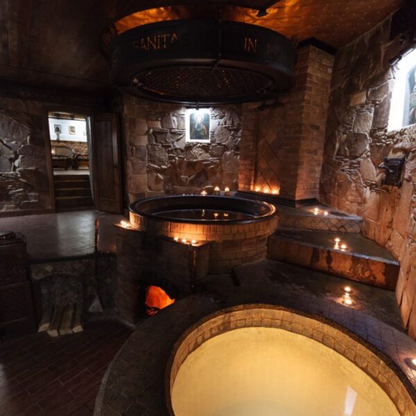 The Living Water in Mizhhirya is worth a visit. The spa complex includes a wood-fired sauna, a Carpathian vat, Finnish and infrared saunas, a Roman steam room, a Charcot shower and a summer shower, a hay room, an open-air jacuzzi, a massage room, a salt room, a lounge area with panoramic windows, and an outdoor recreation area. There is also a foot massager made of stone.
