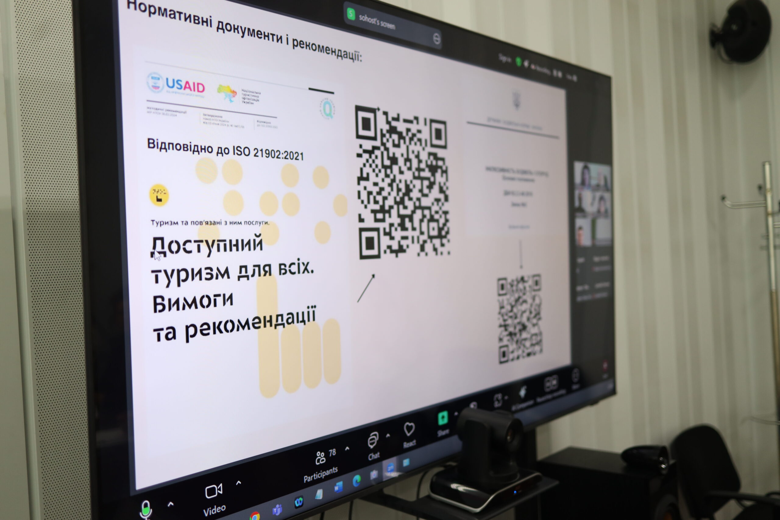 Учасникам зустрічі розповіли про Національну стратегію зі створення безбар’єрного простору в Україні на період до 2030 року та познайомили з методичними рекомендаціями з влаштування інклюзивного середовища у закладах HoReCa, а фахівцям туристичного супроводу наголосили на важливості надання інформації в доступних для осіб з інвалідністю форматах (переклад українською жестовою мовою, субтитрування, аудіокоментування тощо).