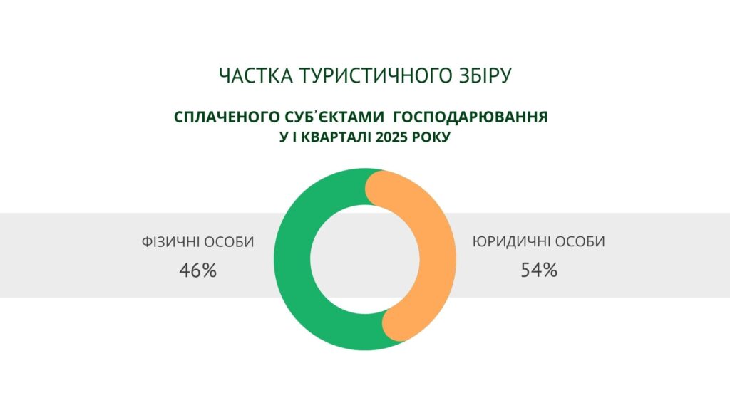 Сумарно ТОП 10 платників-підприємців у 1 кварталі 2025 року сплатили до бюджетів громад області 1,8 млн грн туристичного збору, що становить 34,2% від усіх надходжень (юридичних та фізичних платників разом) за січень-березень 2025 року.