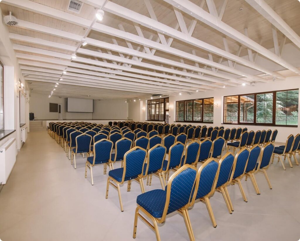 Неперевершена локація, просторі зали, бездоганний стиль та високий рівень сервісу роблять Verkhovyna Resort ідеальним вибором для вашого наступного конгресу, бізнес-зустрічі, прес-конференції чи наукового з’їзду. Починаючи від масштабних заходів просто неба і до конфіденційних угод у кімнаті переговорів – кожен простір підкріплений найсучаснішими аудіо / відео сервісами, які дозволять провести вашу подію на найвищому рівні. До ваших послуг конференц-центр загальною площею більше 500 кв.м., оснащений надсучасним. Три різні зали дозволяють залежно від потреби розмістити від 12 до 200 учасників.