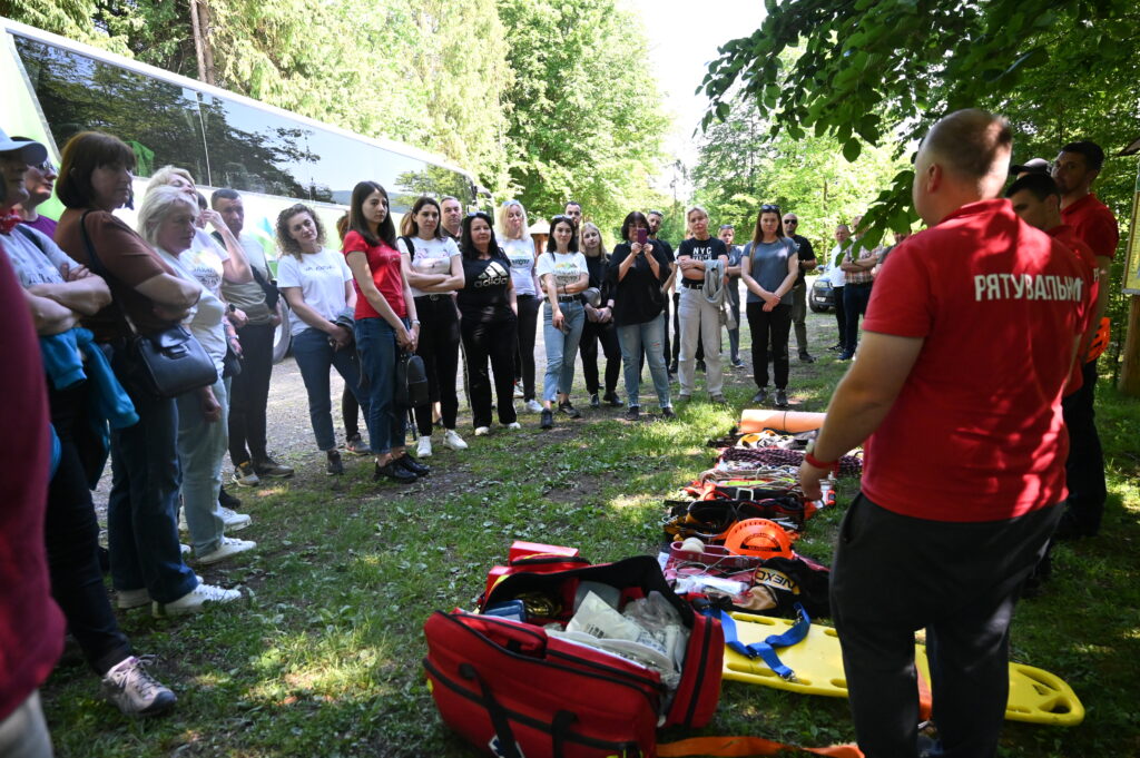 У свою чергу представники гірської пошуково-рятувальної частини Аварійно-рятувального загону спеціального призначення Управління ДСНС України у Закарпатській області провели навчання з надання першої долікарської допомоги потерпілим та розповіли про порядок дій з евакуації травмованих.